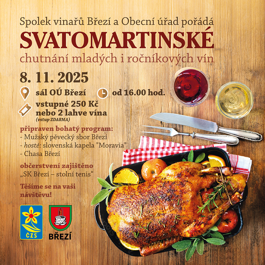 Obec BřezíO události Letošní Svatomartinské koštování v Březí se neslo v tradičně přátelské atmosféře. Kromě místních obyvatel přijela i oblíbená kapela ze Slovenska, která celému večeru dodala živou a radostnou náladu. Do naší obce zavítalo také 25 hostů z družební obce Suchá nad Parnou, s nimiž nás pojí dlouholeté přátelské vztahy.