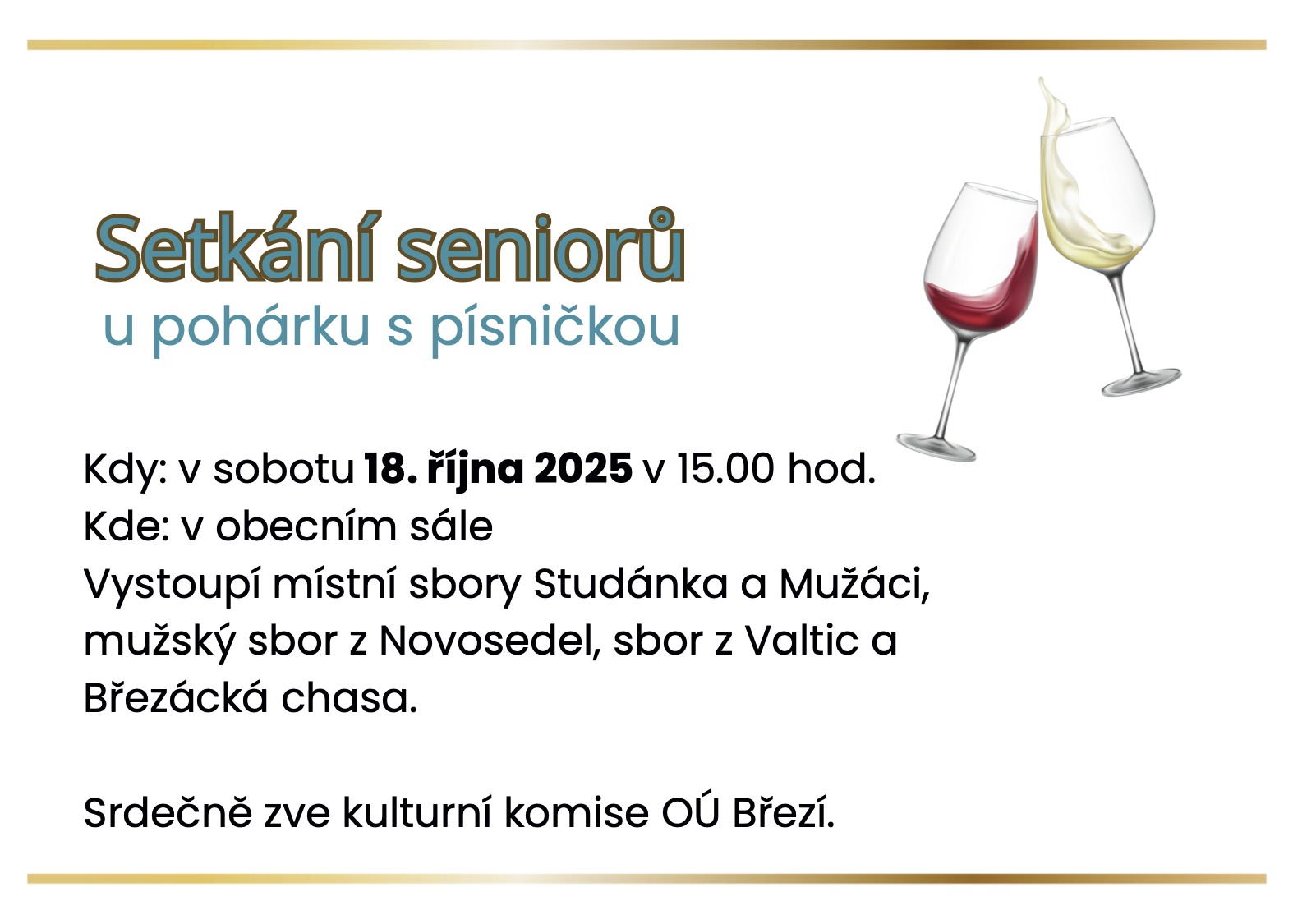 Dne 18. října 2025 se v naší obci uskutečnilo tradiční setkání seniorů, které se již stalo milou podzimní tradicí. Celou akci připravila kulturní komise ve spolupráci s Obecním úřadem Březí a atmosféra byla po celé odpoledne velmi přátelská a srdečná.