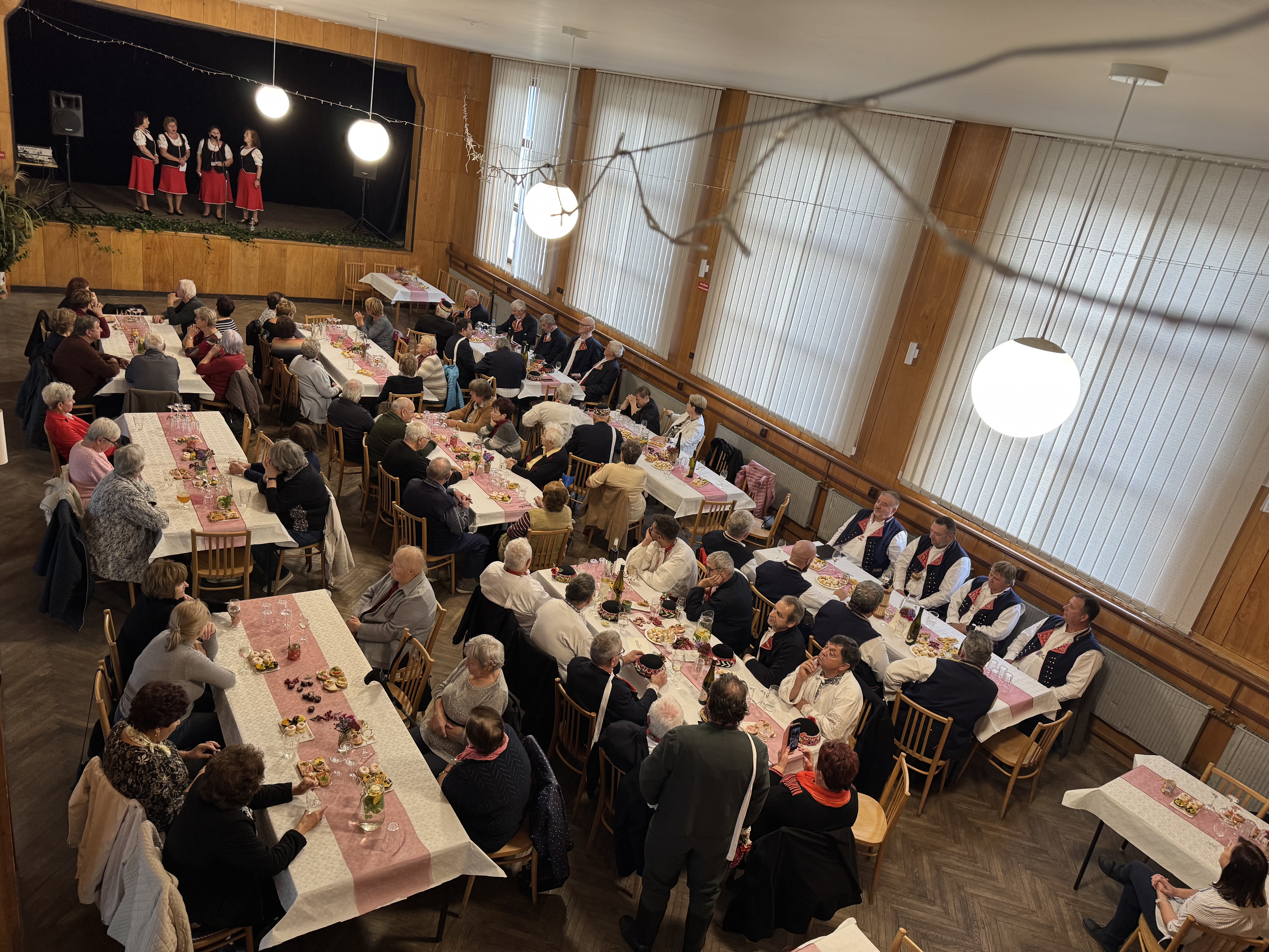 Na úvod přivítal všechny přítomné starosta obce Miroslav Vymyslický, který ve svém krátkém projevu vyzdvihl význam takových setkání a ocenil, že se naši senioři stále aktivně podílejí na životě v obci. Připomněl také, že právě starší generace pomáhá uchovávat tradice, hodnoty a vzpomínky, které tvoří základ identity naší obce.