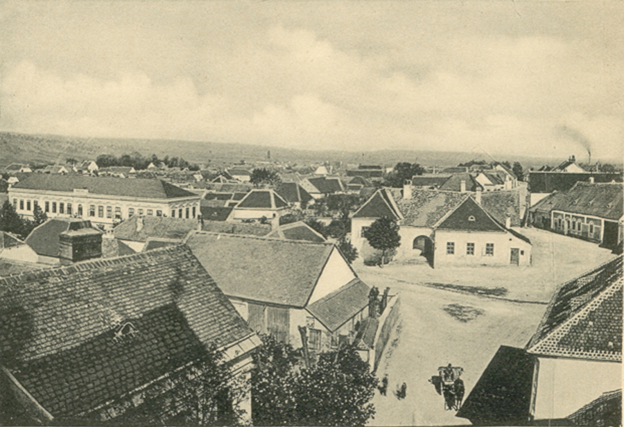 Kirchengasse (v překl. Kostelní ulice), od pranýře směrem ke kostelu (do r. 1945)
