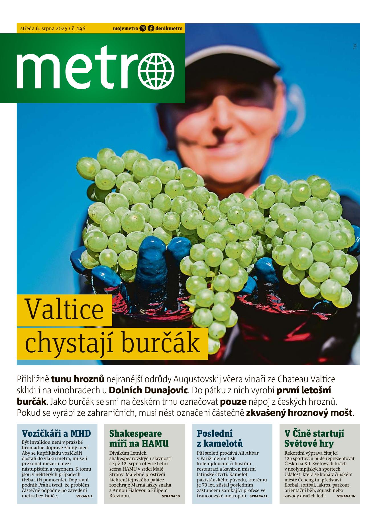 O události Vinařství Chateau Valtice začalo ve svých vinicích na Kraví hoře nedaleko Dolních Dunajovic sbírat první hrozny na burčák. Jedná se o odrůdu Augustovskij a Valtičtí předpokládali, že se první burčák vypije už během víkendových slavností ve Valticích. Odkazy https://www.idnes.cz/brno/zpravy/vinari-sber-hroznu-burcak-sezona-valtice-dolni-dunajovice.A250805_115253_brno-zpravy_coch (url)