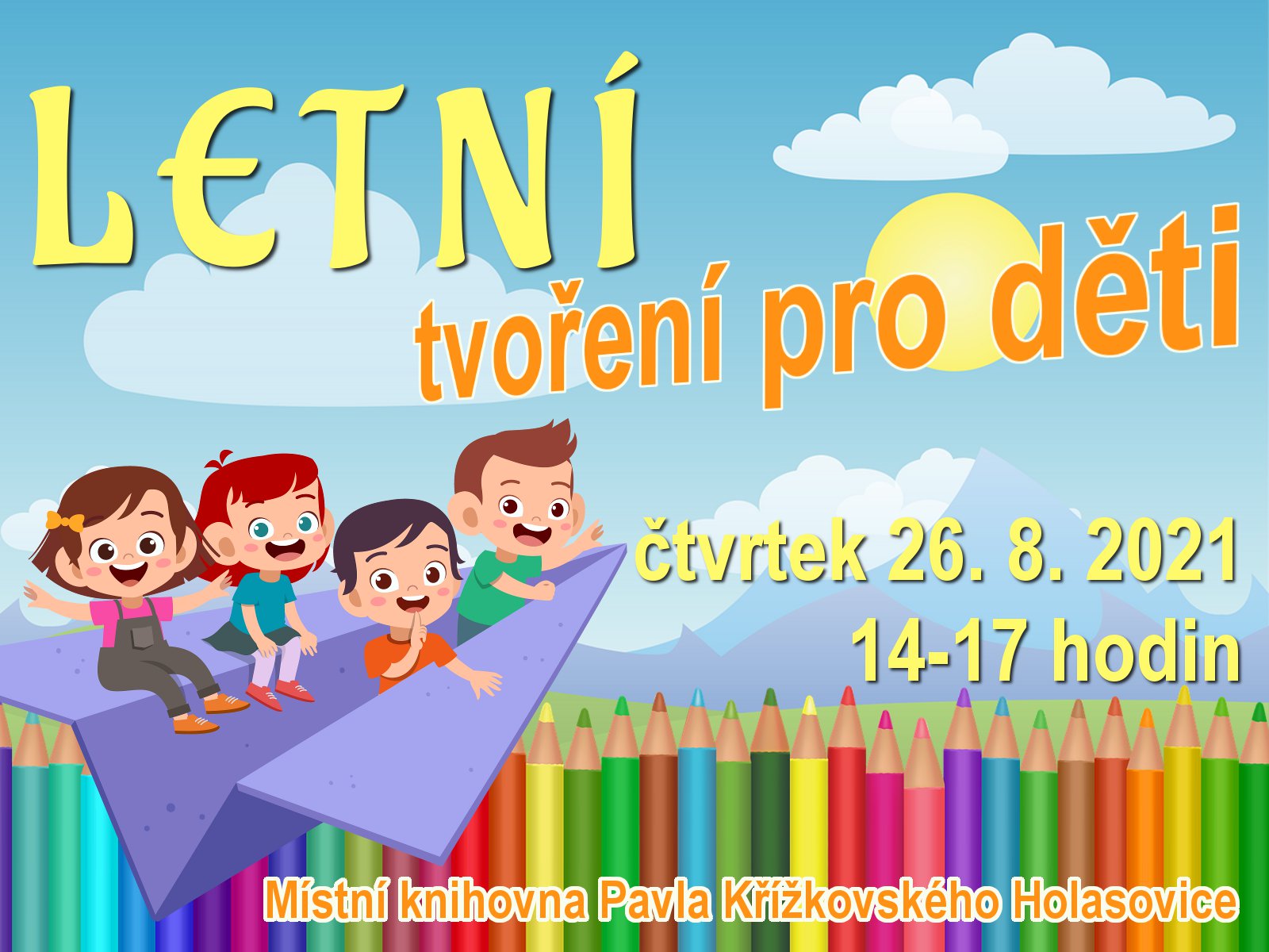 Organizátor Místní knihovna Pavla Křížkovského Holasovice O události Výtvarná dílna pro děti, tentokrát s letní tématikou.