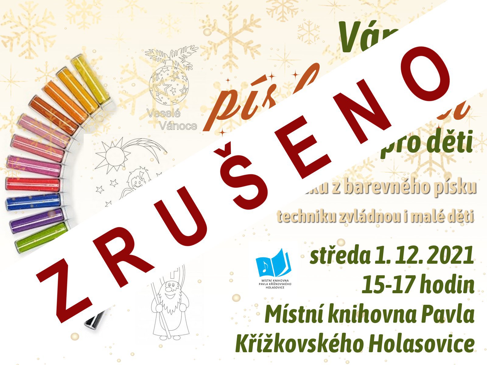 Název Vánoční pískohraní Jiný název výtvarná dílna Typ události Kultura Klíčová slova výtvarná dílna, Místní knihovna Pavla Křížkovského Holasovice Datum a místo konání 01. 12. 2021, 15:00 hod. - 01. 12. 2021, 17:00 hod.