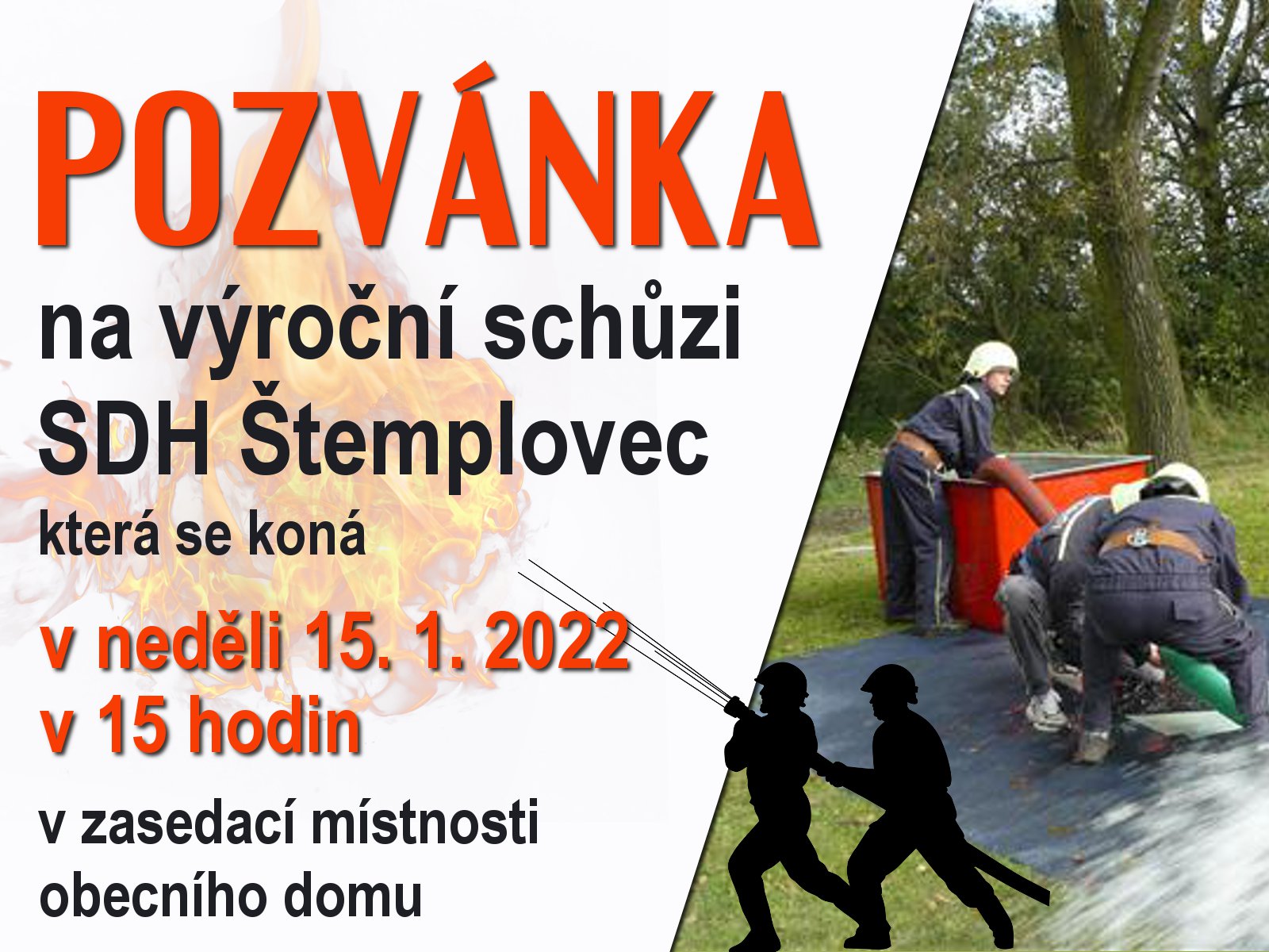 Organizátor Sbor dobrovolných hasičů Štemplovec O události Výroční schůze Spolku dobrovolných hasičů ve Štemplovci.
