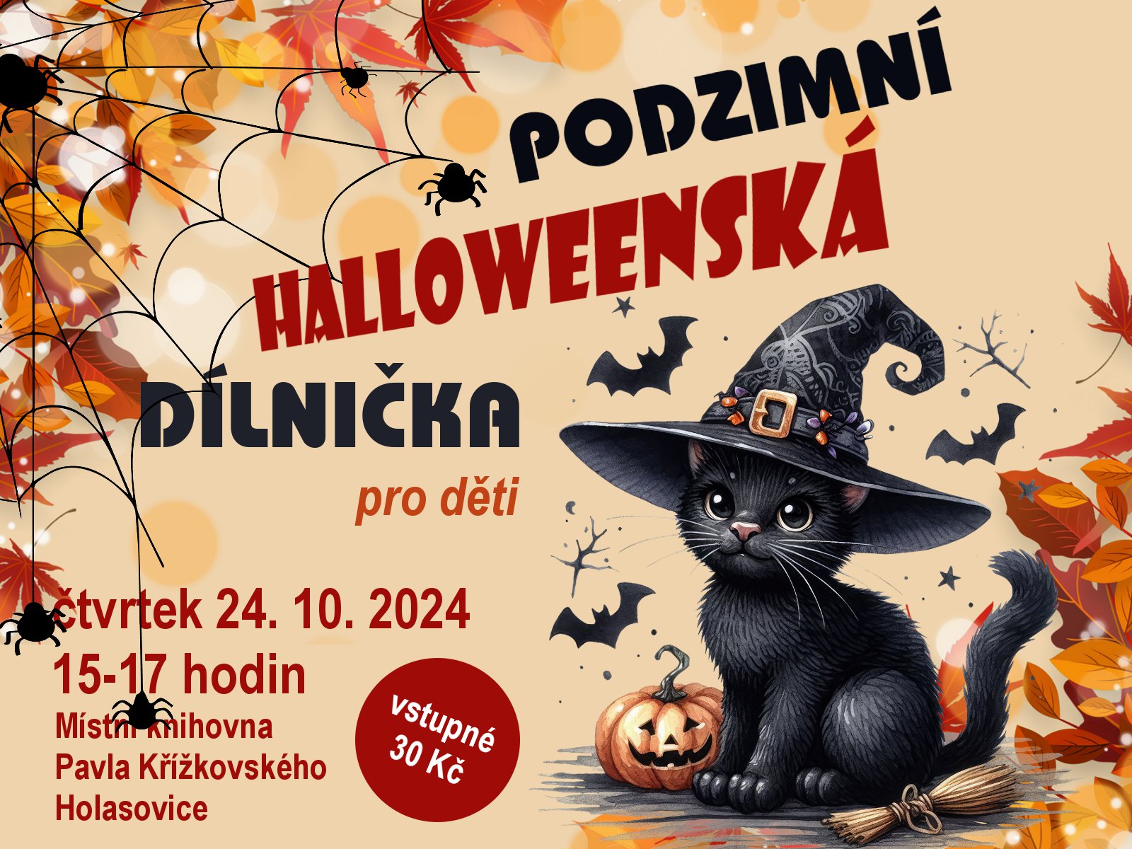 Klíčová slova akce pro veřejnost, akce pro děti, výtvarná dílna, podzim, Halloween, Místní knihovna Pavla Křížkovského Holasovice