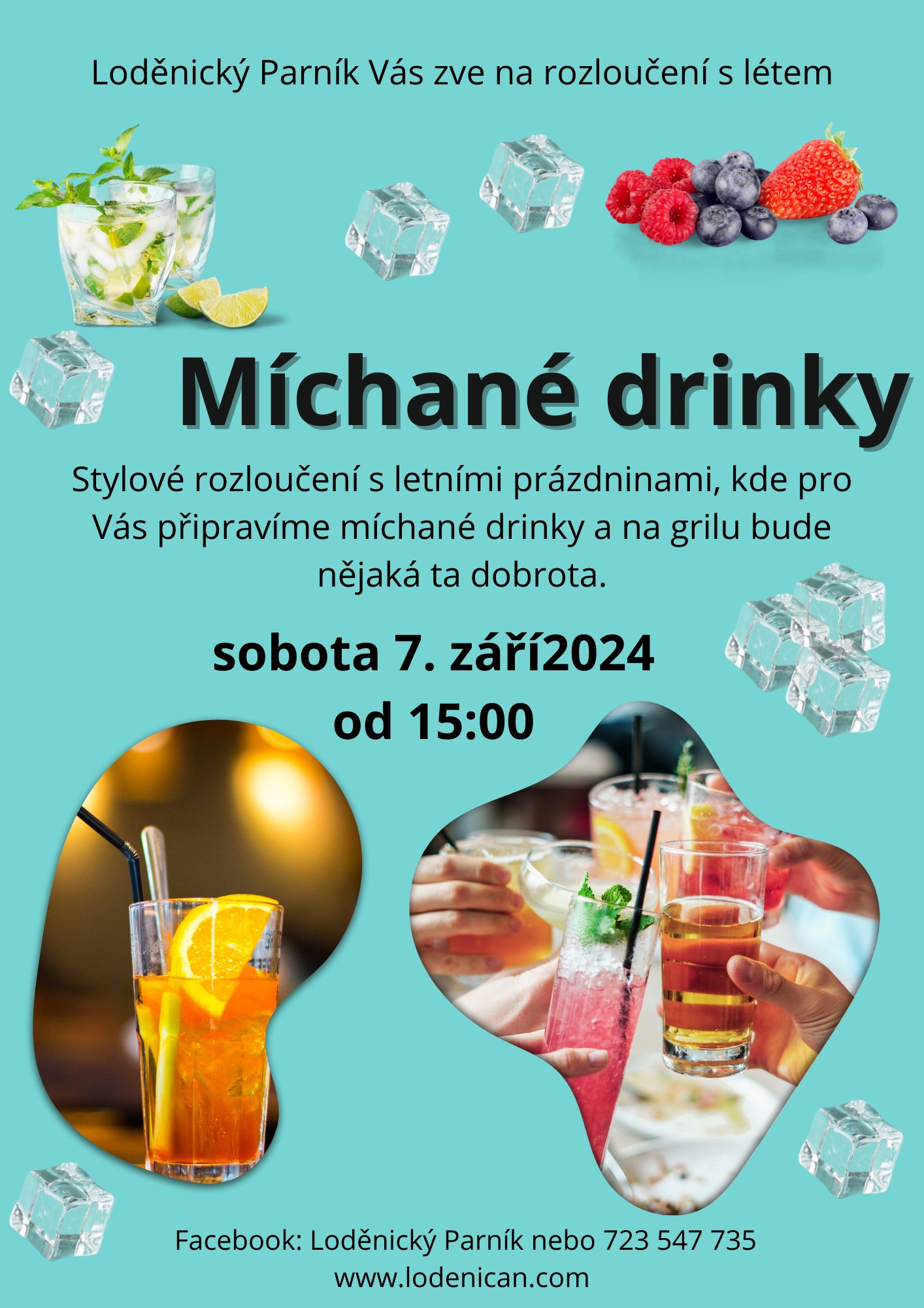 Název Rozloučení s létem - míchané drinky Typ události Kultura Klíčová slova akce pro veřejnost, míchané drinky, Loděnický parník Datum a místo konání 07. 09. 2024, 15:00 hod.