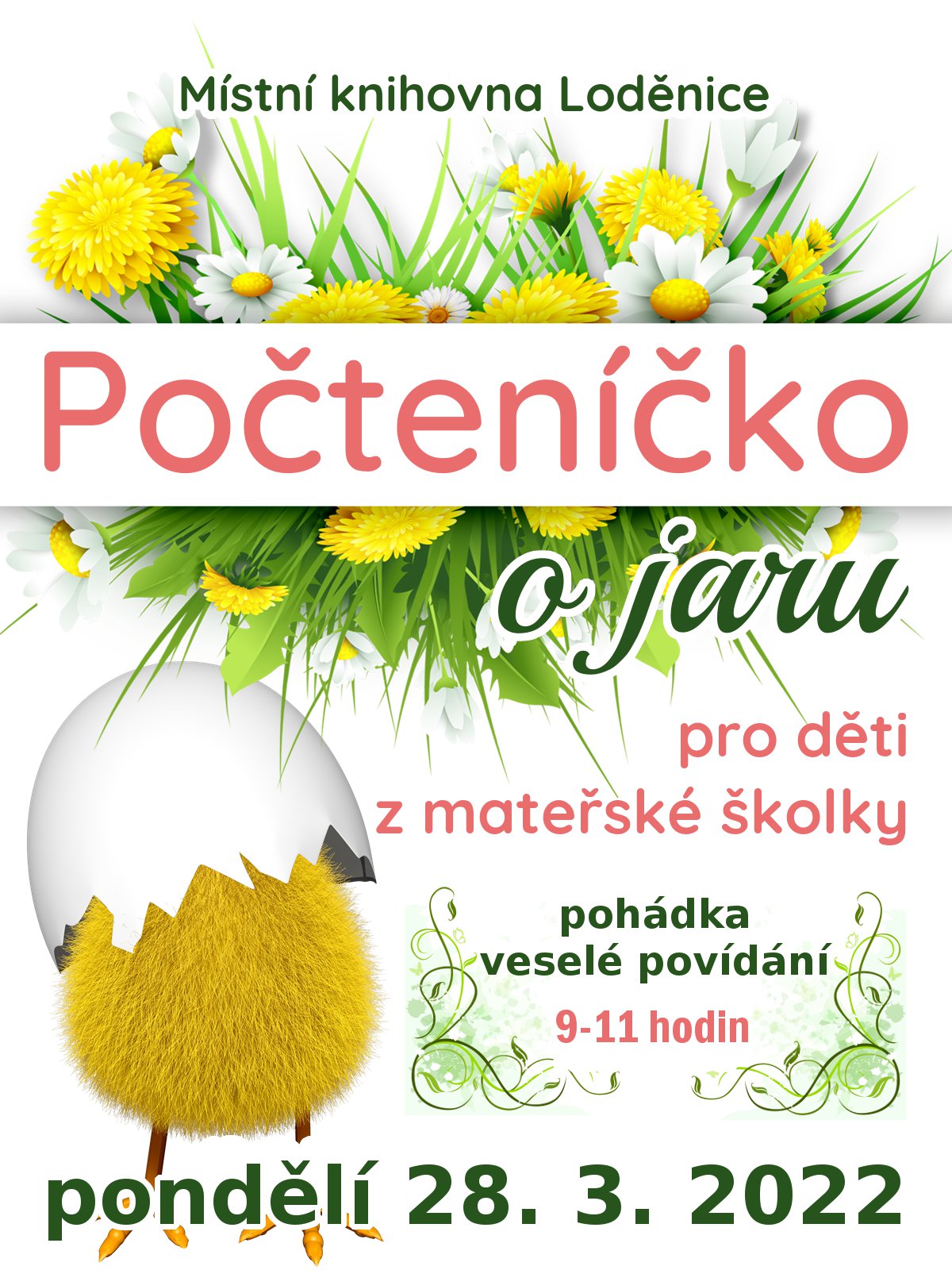 O událostiDěti mateřské školy v knihovně. Pohádka, veselé povídání. Zkrátka počteníčko o jaru.