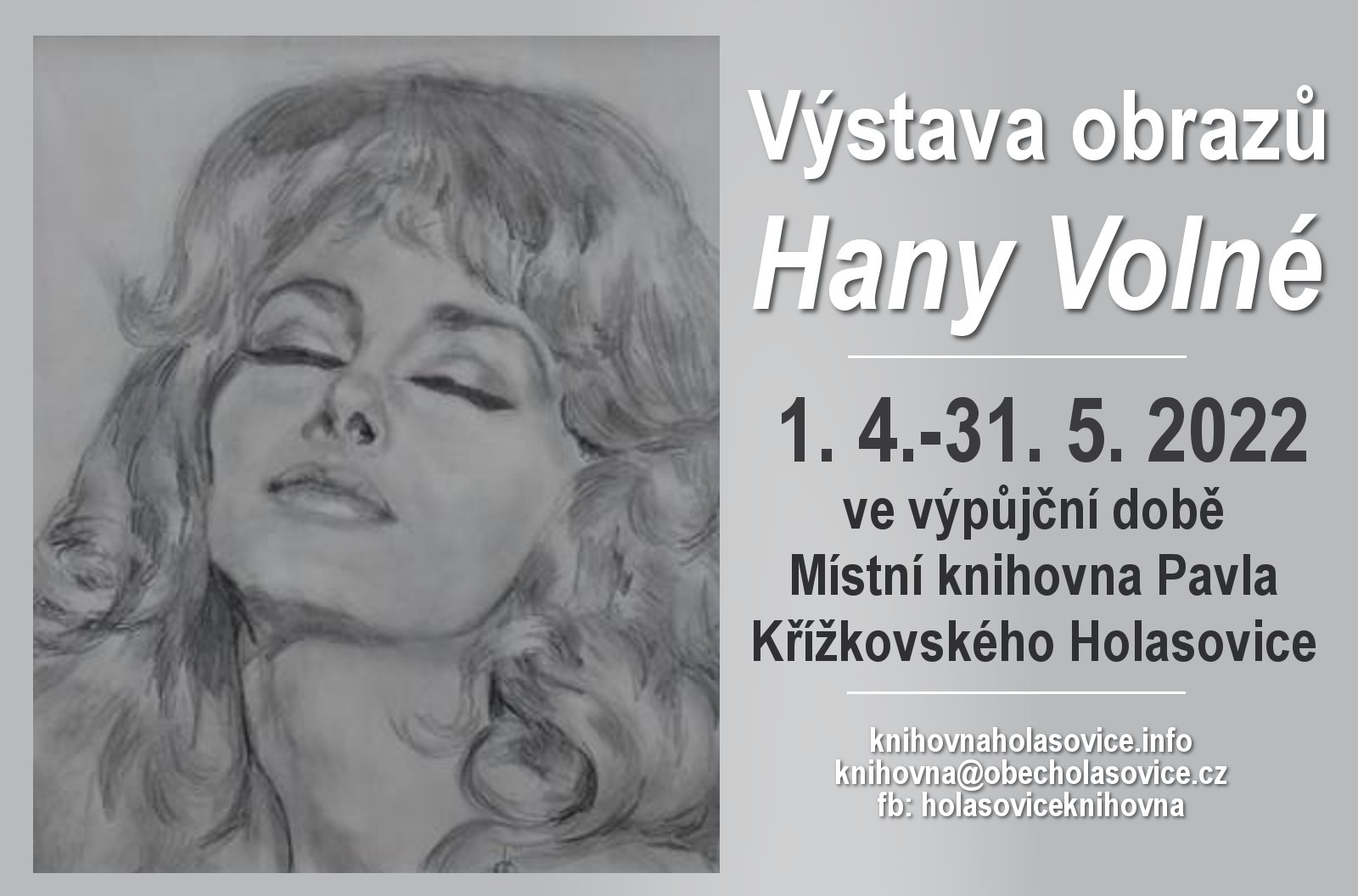 Organizátor Místní knihovna Pavla Křížkovského Holasovice O události Známé filmové osobnosti, lidé z našeho regionu - ti všichni v obrazech Hany Volné z Neplachovic.