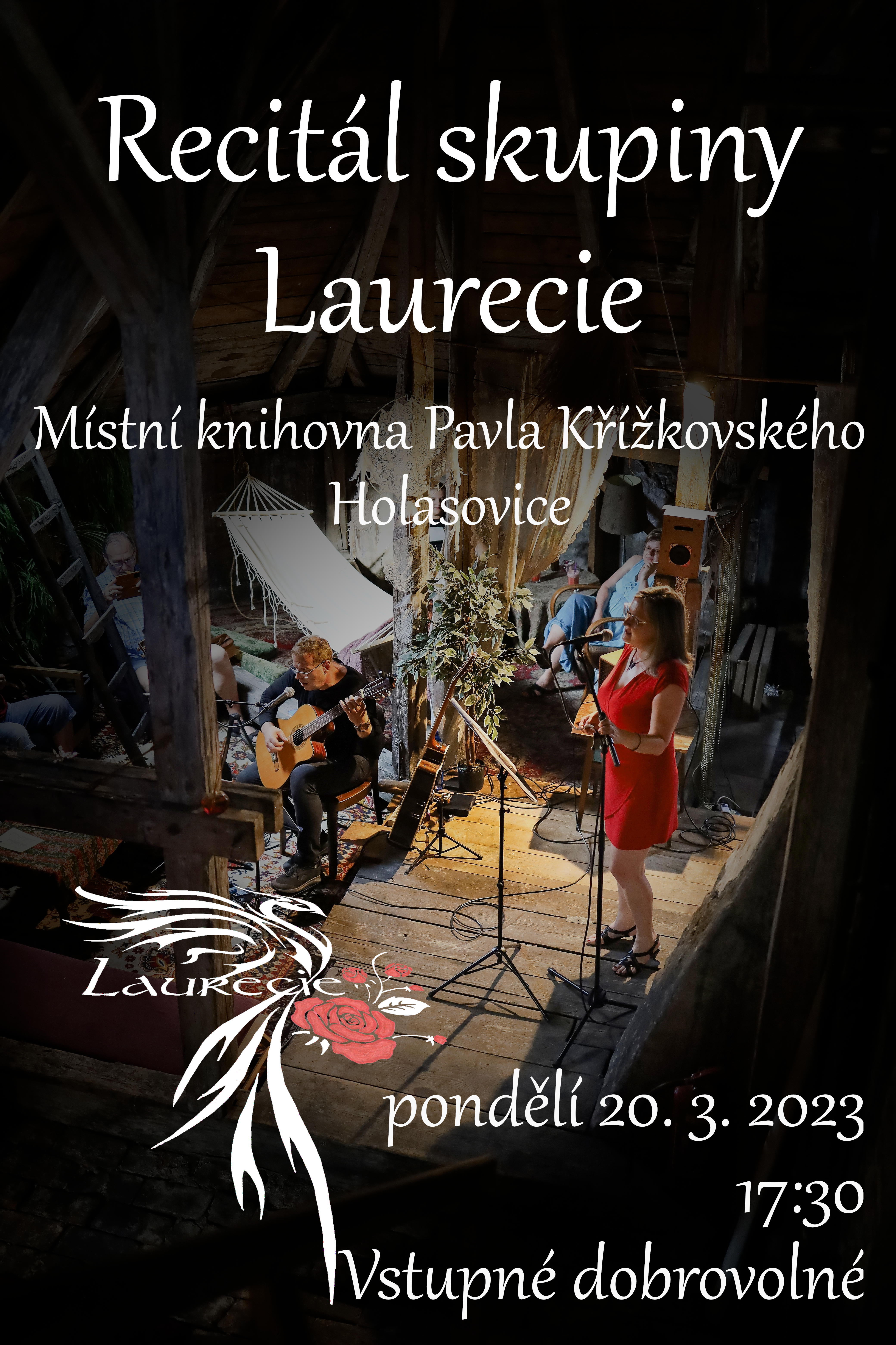 Organizátor Místní knihovna Pavla Křížkovského Holasovice O události Recitál skupiny Laurecie. Zpěv: Martina Papeschová, kytara: Robert Čemera. Na tuto akci si rezervujte místa.