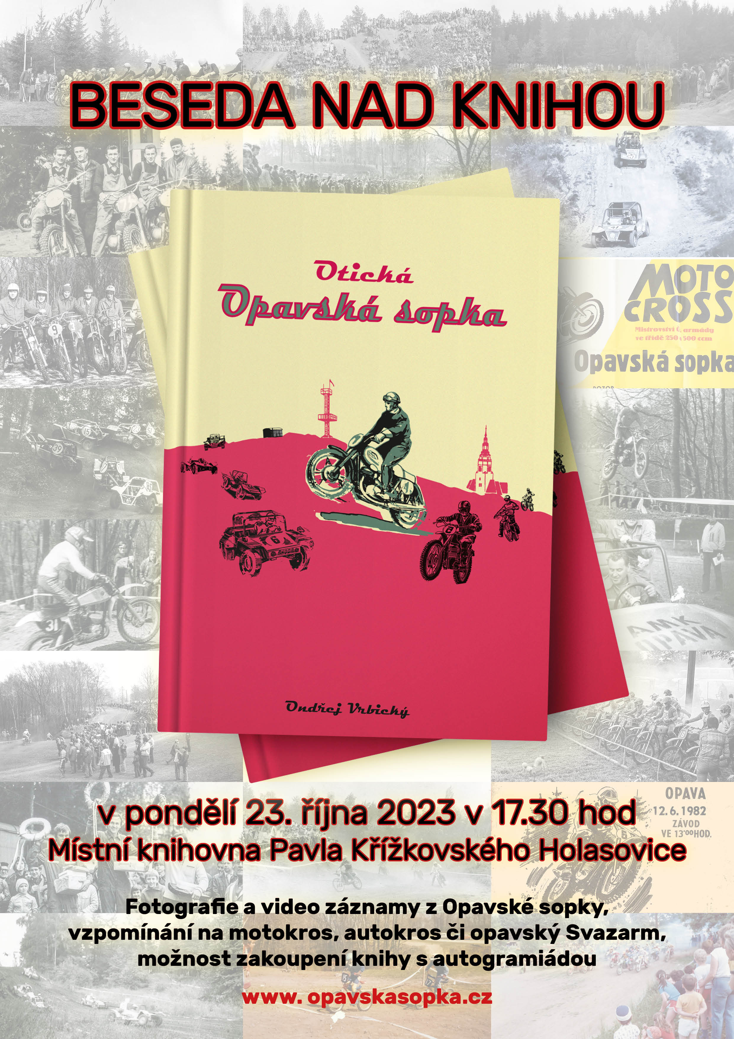 Organizer Místní knihovna Pavla Křížkovského Holasovice About event Fotografie a videozáznamy z Opavské sopky, vzpomínání na motokros, autokros či opavský Svazarm, možnost zakoupení knihy s autogramiádou.